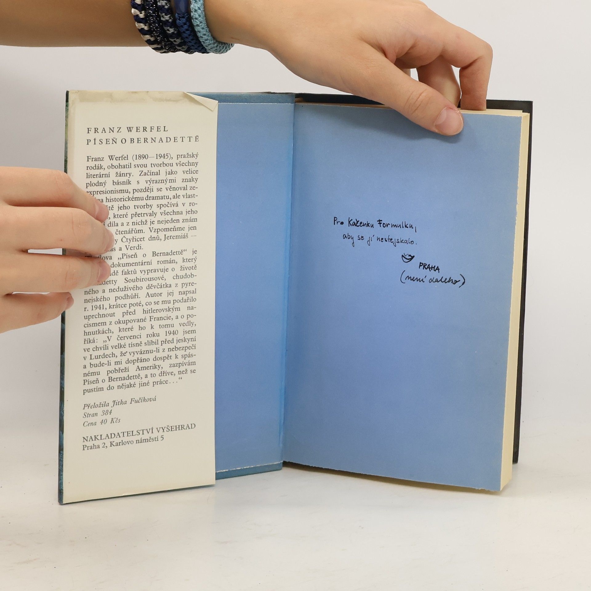 Dokumentární román, vzniklý jako splnění slibu za autorův zdařený útěk před hitlerovským nacismem z okupované Francie, vypráví příběh Bernadetty Soubirousové, chudobného děvčátka, jehož osud souvisí s poutním místem Lurdy v pyrenejském podhůří. 33-805-89