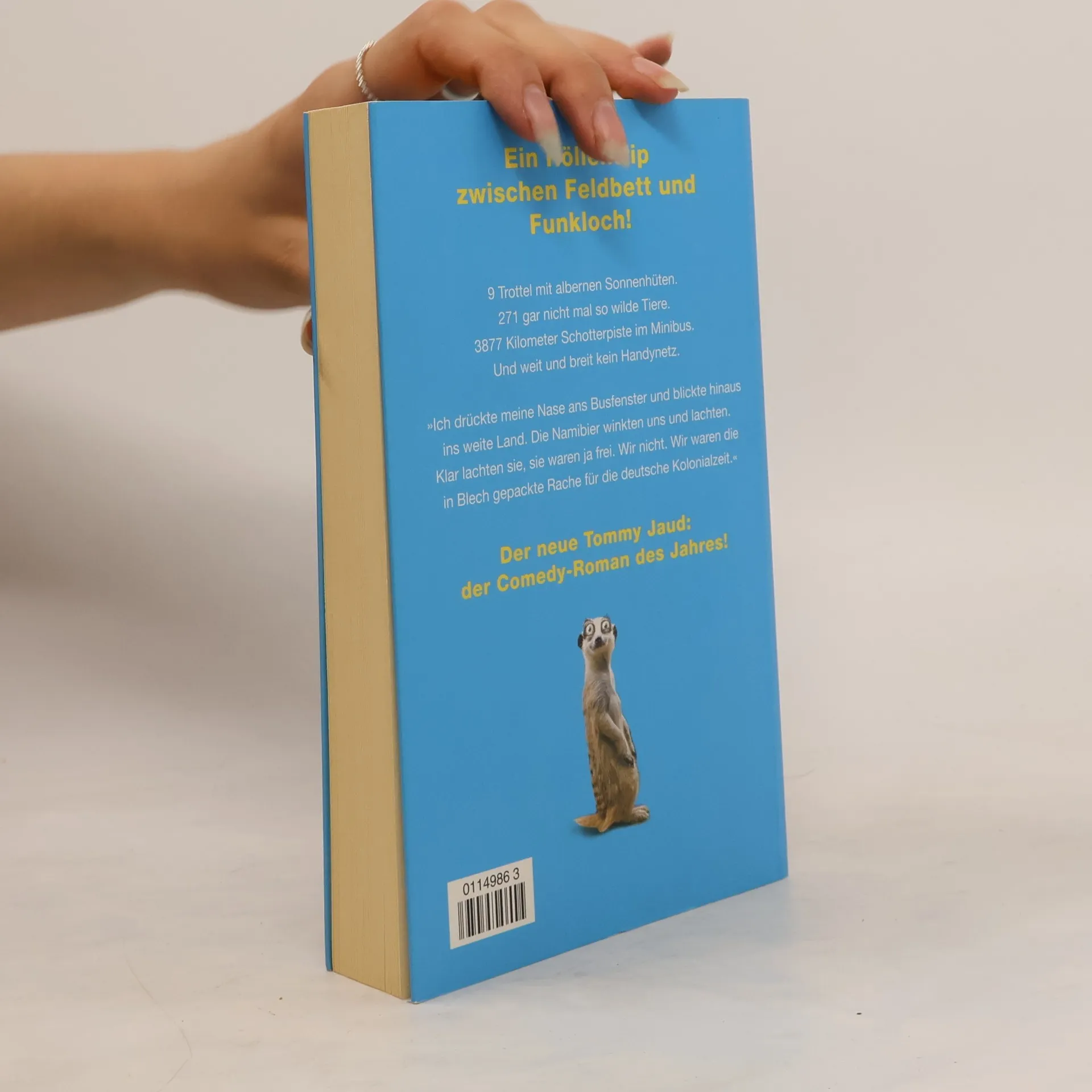 Der Bestseller – mit Daumenkino! Sitzreihe 12 war die letzte, die zwischen Tortellini und Hühnchen wählen durfte. Ich saß in Reihe 13. Schon auf dem Hinflug hätte mir klar sein können, dass der Jahresurlaub zum Albtraum wird. Wer an allem schuld ist, ist für Matze klar: seine Freundin Sina. Während er die neue Eigentumswohnung klargemacht hat, sollte sie einfach nur »irgendwas« buchen. Doch das »irgendwas« entpuppt sich als zweiwöchige Gruppenreise durch Namibia, wo selbst eine hüftkranke Schildkröte schneller ist als das Internet. Warum muss er in einem Kleinbus voller Bekloppter über afrikanische Schotterpisten rütteln, statt auf Mallorca ein Bierchen zu schlürfen? Bei minus zwei Grad stolpert er in einem albernen Wanderhut über die Dünen der Kalahari. Als er erfährt, dass die sicher geglaubte Wohnung an andere Käufer geht, wenn er nicht sofort die fünf Tausend Euro Reservierungsgebühr überweist, hat er gleich drei neue Probleme: Das nächste Internetcafé ist fünfhundert Kilometer entfernt, sein Handyakku leer und das einzige Ladegerät in österreichischer Hand. Ich drücke meine Nase ans Busfenster und blicke hinaus ins weite Land. Die Namibier winken uns und lachen. Klar lachen sie, sie sind ja frei. Wir nicht. Wir sind die in Blech gepackte Rache für die deutsche Kolonialzeit.